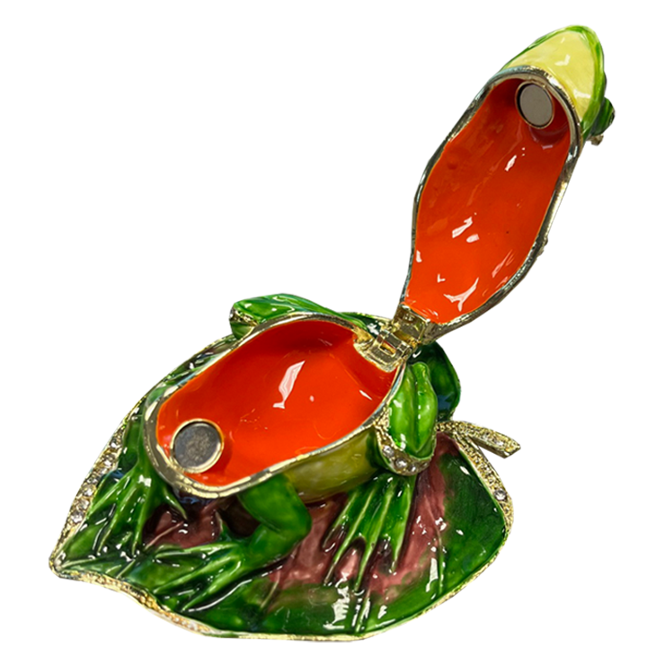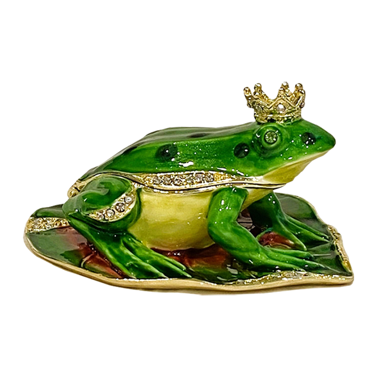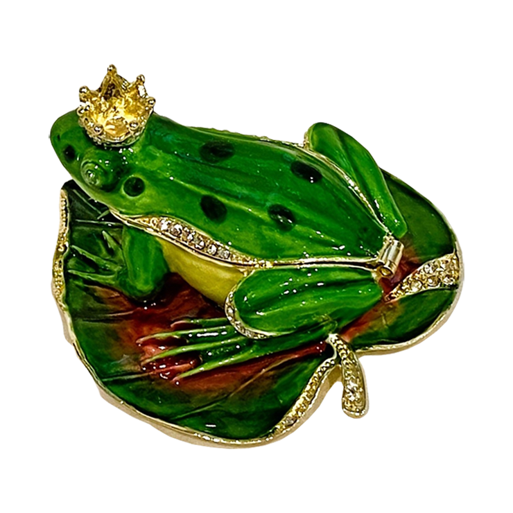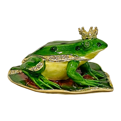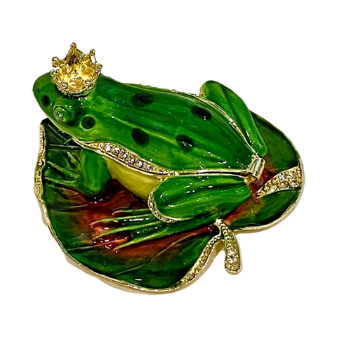 Enamel Bejeweled Frog Prince on Lily Pad Trinket Box