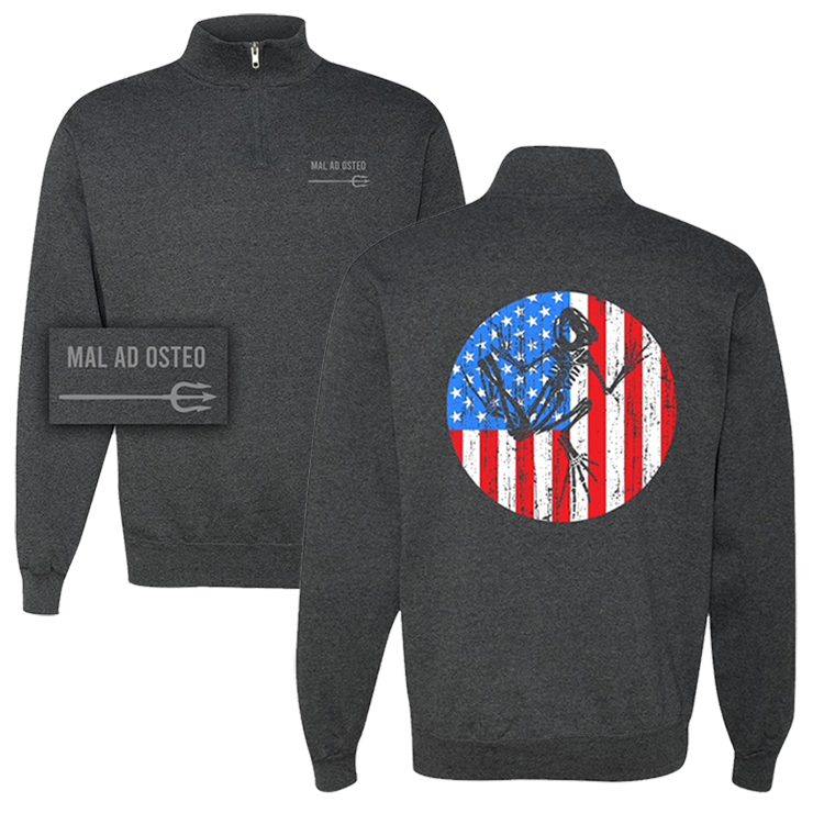 - Screenprint: MAL AD OSTEO above Trident Spear (Both in Gray) on Front Left Chest