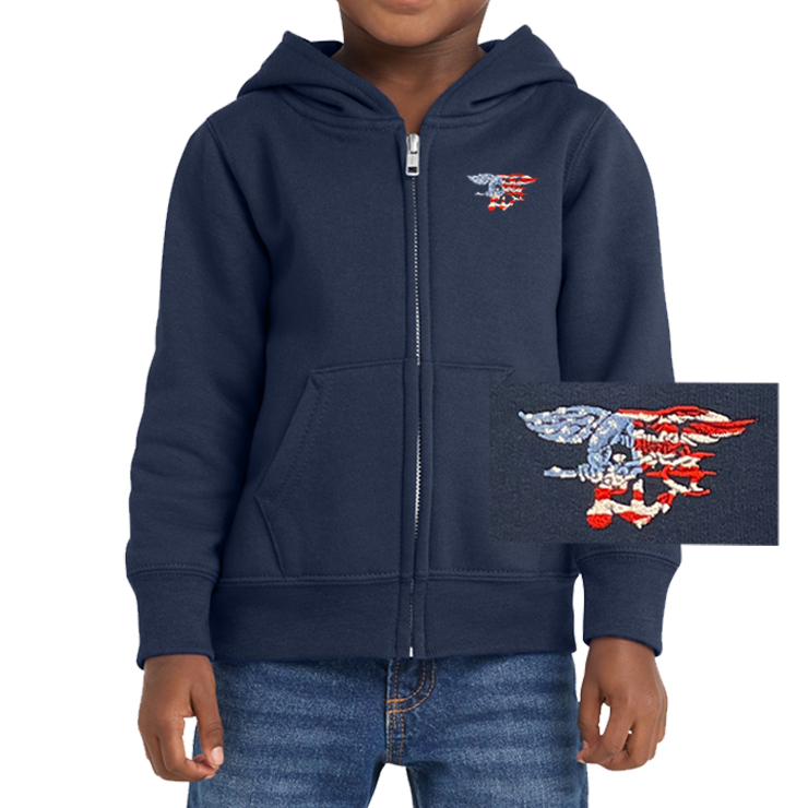 - Embroidered: Light Blue/Red/White Trident Flag Located Front Left Chest