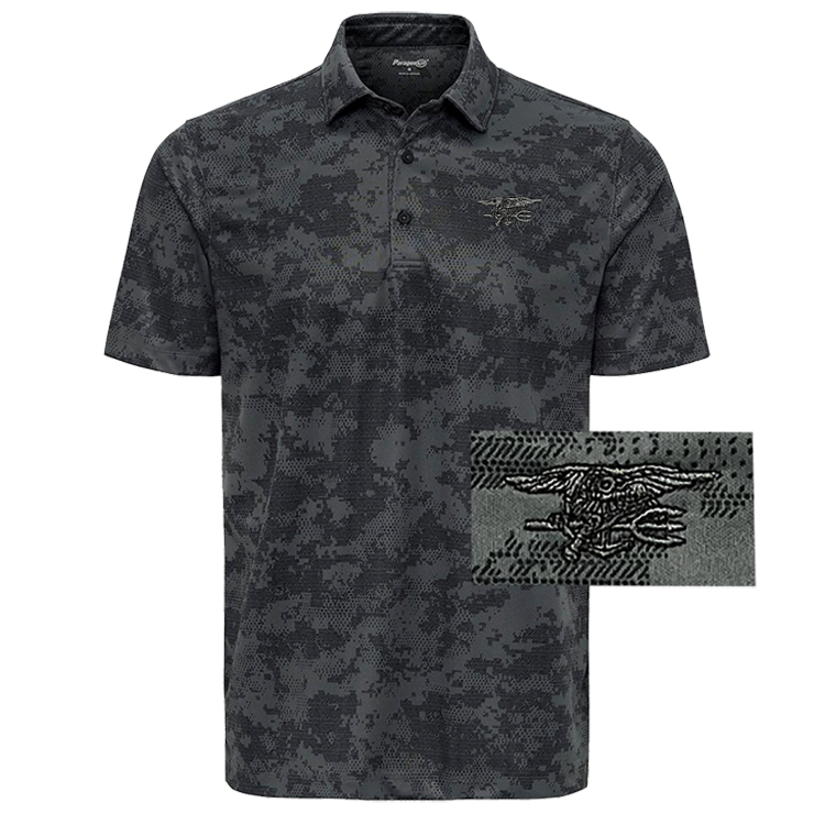 • Embroidered Grey Trident with Black Topstitch on Front Left Chest